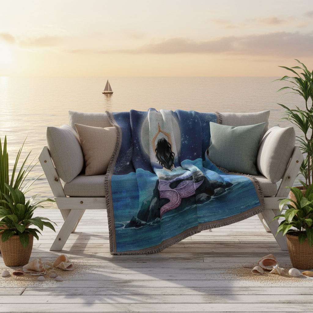 Perfect for mindful evenings, cool coastal mornings, or moments of quiet retreat, this woven blanket wraps you in warmth and serenity. Both artful and soothing, it transforms your space into a sanctuary of lunar calm and coastal Zen.