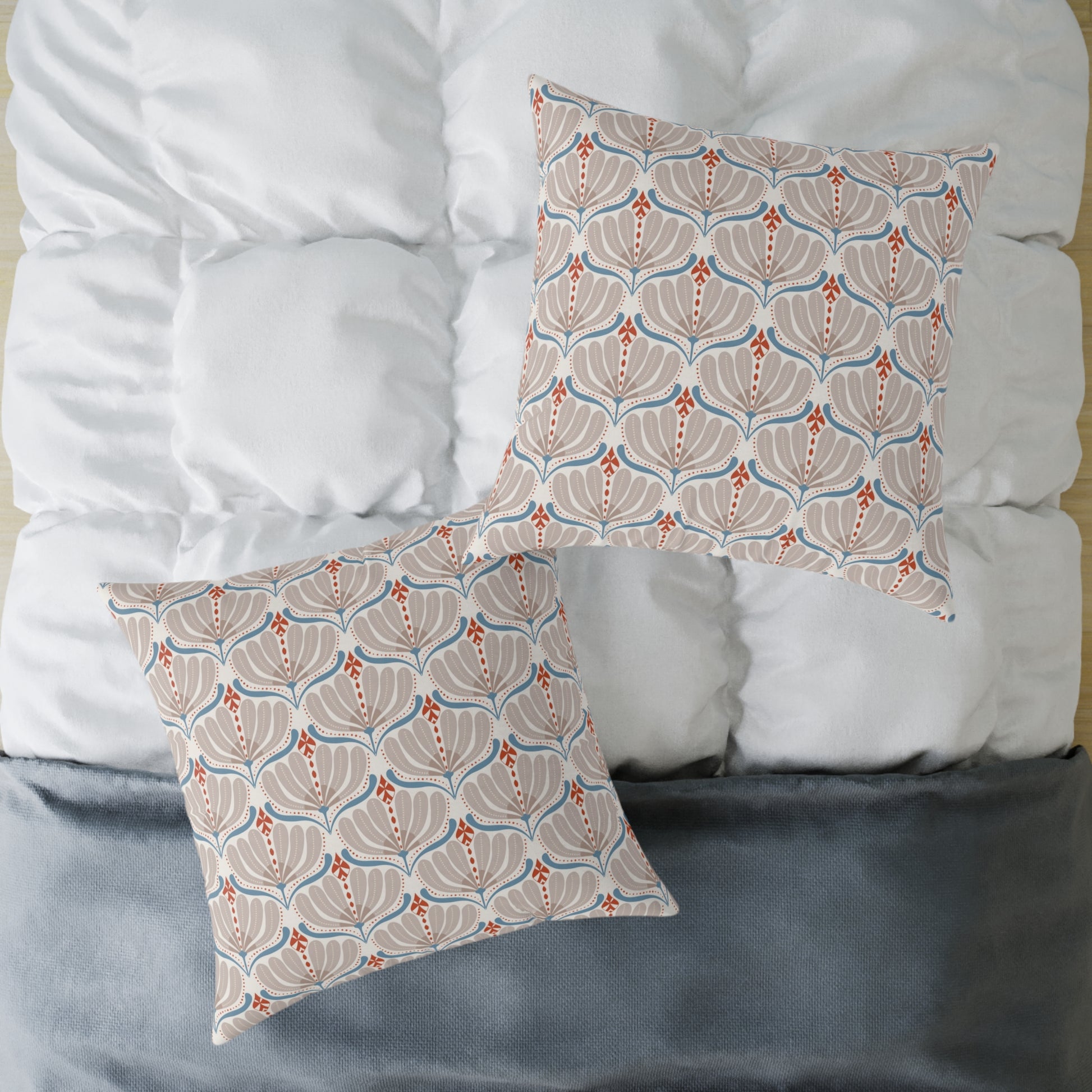 The soft taupe and sandy grays flow like sea-washed stone, while accents of coral orange bring the warmth of autumn leaves to your space. Balanced with hints of ocean-blue, this design feels both grounded in the season and touched by the shore. Perfect for cozying up your home as the days grow cooler, it’s a gentle reminder that autumn can still carry the rhythm of the sea.